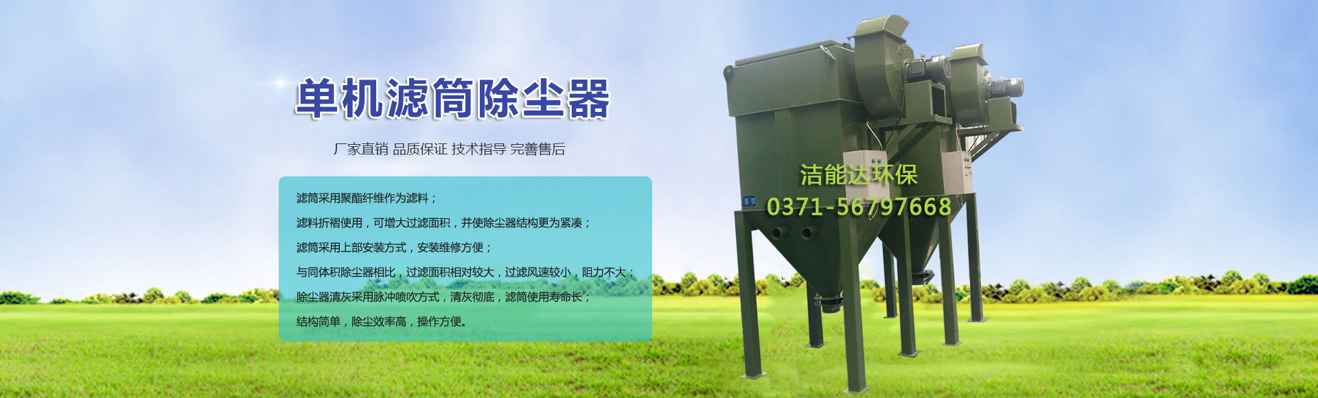 鄭州潔能達(dá)環(huán)保科技有限公司位于河南省鄭州國(guó)家高新技術(shù)產(chǎn)業(yè)開(kāi)發(fā)區(qū),是一家專業(yè)從事濾筒除塵器、布袋除塵器、水膜除塵器、脈沖除塵器、多管除塵器等環(huán)保設(shè)備設(shè)計(jì)、制造、銷售、技術(shù)服務(wù)、技術(shù)咨詢?yōu)橐惑w的綜合性科技企業(yè),擁有完善的技術(shù)和完善的加工制作體系,能滿足不同客戶的需要,是河南除塵器等環(huán)保設(shè)備的生產(chǎn)廠家。企業(yè)以技術(shù)進(jìn)步、技術(shù)創(chuàng)新為主動(dòng)力,不斷開(kāi)發(fā)新產(chǎn)品,擴(kuò)大企業(yè)的發(fā)展空間,形成了適應(yīng)市場(chǎng)需求的主導(dǎo)產(chǎn)品。如:各種系列濾筒式除塵器、各系列布袋式除塵器、除塵脫硫一體化技術(shù)、各種除塵器配件等,其產(chǎn)品適用于各行業(yè)的除塵脫硫工程,完全能滿足現(xiàn)場(chǎng)揚(yáng)塵、含硫設(shè)備的正常運(yùn)行和排放要求,并且運(yùn)行穩(wěn)定,效率高,維修量小,達(dá)到和滿足國(guó)家和各地方大氣污染物的排放標(biāo)準(zhǔn)要求。